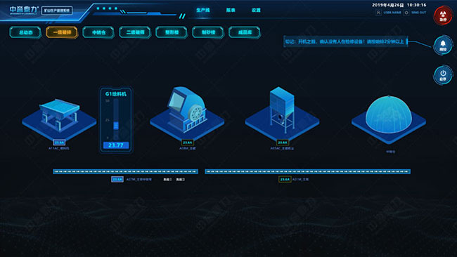 中譽(yù)鼎力礦山設(shè)備自動(dòng)檢(監(jiān))測(cè)系統(tǒng)(智能礦山生產(chǎn)管理系統(tǒng)模塊之一),可實(shí)時(shí)采集監(jiān)測(cè)整條生產(chǎn)線設(shè)備運(yùn)行狀態(tài),如設(shè)備溫度、電壓、電流、振頻等各項(xiàng)數(shù)據(jù),通過三維方式展現(xiàn)生產(chǎn)線設(shè)備各項(xiàng)運(yùn)行參數(shù)。
