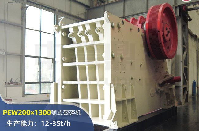 PEW200×1300顎式破碎機(jī)進(jìn)料口尺寸200×1300mm,進(jìn)料粒度180mm左右,出料大小10-30mm,電機(jī)功率30-37kw,時(shí)產(chǎn)量在12-35噸左右,屬于小型鄂破。