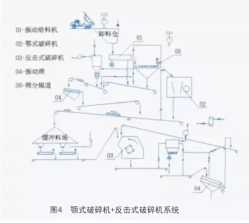 (2)顎式破碎機(jī)+反擊式破碎機(jī)系統(tǒng)