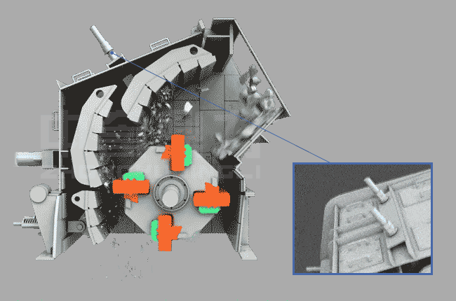 反擊破碎機(jī)出料大小在15~40mm以下,可通過調(diào)整反擊架和板錘間的距離,控制破碎粒度大。闯隽洗笮。。反擊破碎機(jī)屬中細(xì)碎設(shè)備,多用于生產(chǎn)線二級破碎階段,常見搭配組合為“鄂破+反擊破”。
