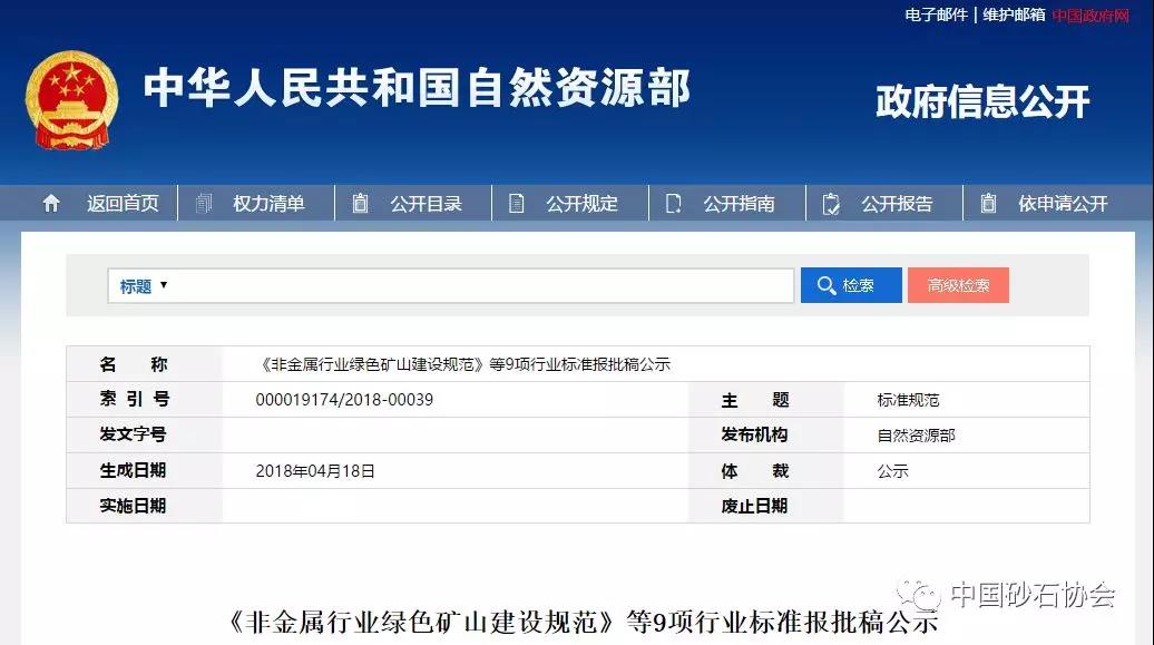 《砂石行業(yè)綠色礦山建設(shè)規(guī)范》等9項(xiàng)行業(yè)報批稿已正式公示