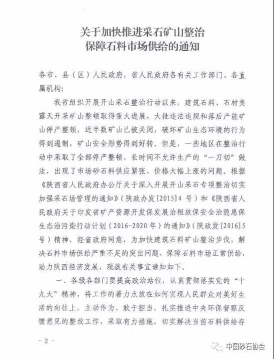 此前,即2017年11月24日,陜西省土資源廳、陜西省發(fā)展和改革委員會、陜西省公安廳、陜西省公安廳、陜西省環(huán)境保護(hù)廳、陜西省住房與城鄉(xiāng)建設(shè)廳、陜西省林業(yè)廳、陜西省安生產(chǎn)監(jiān)督管理局和陜西省交通運(yùn)輸廳八部門聯(lián)和發(fā)布《關(guān)于加快推進(jìn)采石礦山整治 保障石料市場供給的通知》。為加快建筑石料礦山整治步伐,解決石料市場供應(yīng)嚴(yán)重不足的突出問題,保障石料市場正常供給,助力陜西經(jīng)濟(jì)發(fā)展。要求: