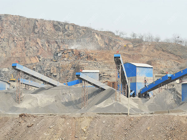 開采的巖石先由震動(dòng)喂料機(jī)進(jìn)料給pe鄂破進(jìn)行大破,二破由圓錐石頭破碎機(jī)達(dá)成,圓錐式破石機(jī)出來的物料上篩石子設(shè)備進(jìn)行篩選分級,過40毫米的物料返回圓錐式破石機(jī)又一次粉碎,引起閉路循環(huán),不過40毫米的物料進(jìn)入沖擊式破碎機(jī)進(jìn)行整形粉碎,沖擊式破碎機(jī)出來的物料上成品篩進(jìn)行篩選分級,過20毫米的返回沖擊式破碎機(jī)循環(huán)粉碎,不過20毫米的物料經(jīng)皮帶機(jī)傳送至各個(gè)成品骨料堆。
