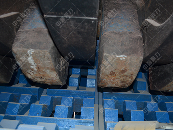 在破碎過程當(dāng)中,巖石從頂部加料口進入后與高速運行的錘頭猛烈相撞,瞬間將巖石進行一次破碎,沖擊錘取得高莫氏硬度巖石的沖擊、擠壓等面影響,一方面引發(fā)基體和碳化物的碎裂掉落,另一方面引發(fā)基體的翻卷,出現(xiàn)塑性彎曲, 疲勞掉落,引發(fā)錘頭出現(xiàn)了不同程度的溝槽。