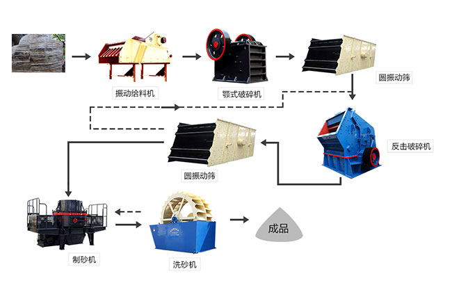 兩段加工流程主要有開路以及閉路兩大類,針對進口物料規(guī)格在200-400毫米,產(chǎn)品物料規(guī)格在12-30毫米的小產(chǎn)量井下選礦廠實用,在某些情景下段的破碎工作量不大,這時在破碎前能夠不進行預(yù)先篩,直接選用兩段閉路加工流程,兩段開路破碎的運用,主要常見于某些重選廠或需要將破碎后的物料直接送至磨機的小產(chǎn)量選礦廠。