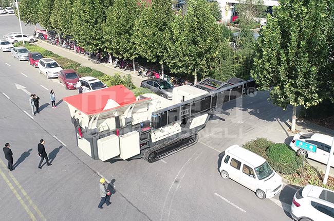 輪胎式移動碎石機適合在平坦的道路上行走,需要半掛車頭進行牽引移動轉(zhuǎn)場,需要簡單的整理平整地面就可進行碎石作業(yè)。