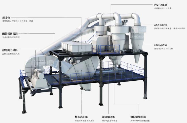 選粉機(jī):動(dòng)態(tài)選粉機(jī)調(diào)整物料級(jí)配,靜態(tài)選粉機(jī)打散物料使選粉更;