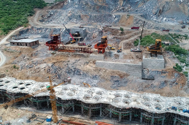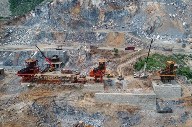 該時(shí)產(chǎn)800噸石灰石骨料生產(chǎn)線于2018年6月投產(chǎn)使用,其使用的石子加工設(shè)備,如給料機(jī),重錘破,篩分機(jī)等均由中譽(yù)鼎力設(shè)計(jì)配置,主要生產(chǎn)30-40、20-30、10-20、5-10石子骨料。