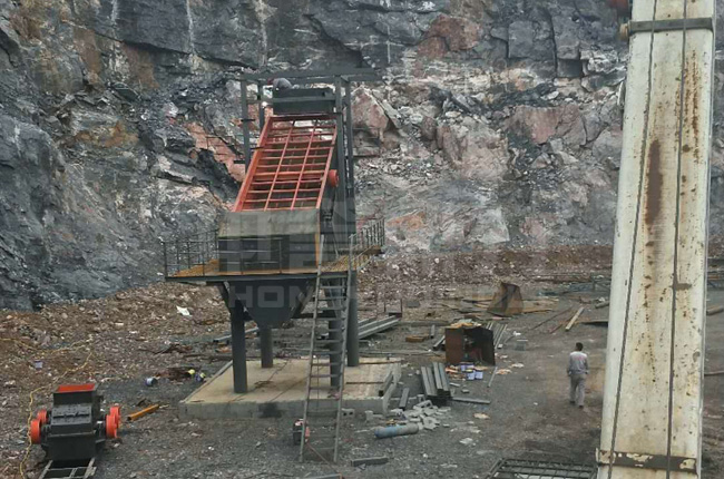 該項(xiàng)目是中譽(yù)鼎力提供設(shè)備并安裝,設(shè)備10月16日配送進(jìn)場,預(yù)計(jì)12月18日竣工,是一條200噸石子破碎制砂生產(chǎn)線。