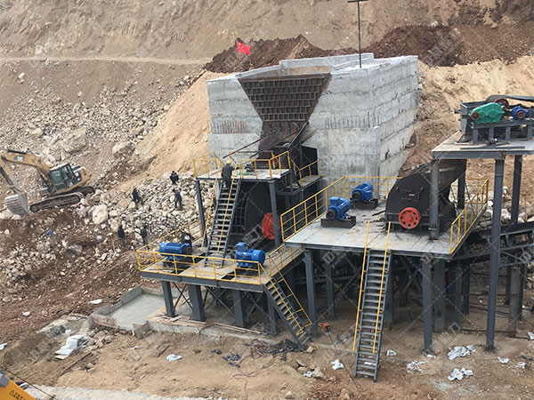 先,石頭由粗碎機(jī)進(jìn)行破碎,然后,產(chǎn)成的粗骨料由皮帶運(yùn)輸機(jī)運(yùn)輸至破碎機(jī)進(jìn)行深度破碎,整型破碎后的石頭進(jìn)振動(dòng)篩篩選分級(jí)出兩種石子,符合制沙機(jī)給料粒度的石子進(jìn)制沙砂子,另一部分返料進(jìn)細(xì)破,進(jìn)制沙機(jī)的石子一部分制成砂,經(jīng)砂石洗選機(jī)械(可選)清洗后制成成品砂,另一部分進(jìn)制沙機(jī)又一次破碎。
