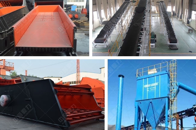 在粉碎生產(chǎn)線中除了主機械,還需要搭配喂料機、震動篩、傳送機、洗沙機和除塵、噴淋、 降噪系統(tǒng),才能的開展工作。