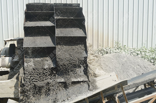砂石由喂料槽進(jìn)入洗槽中,在葉輪的驅(qū)使下翻滾,并互相研磨,除去遍及砂石表觀的異物,此時(shí)損毀包覆砂粒 的水汽層,以利于脫水;此時(shí)加水,引起強(qiáng)悍水流,二話不說將異物及比重小的異物沖走,并從溢出口洗槽排出,達(dá)到清洗作用。輪斗式洗沙機(jī)處理能力大,能夠清洗5毫米左右的物料,并且它的投資規(guī)范相比低,性價(jià)比很不錯;
