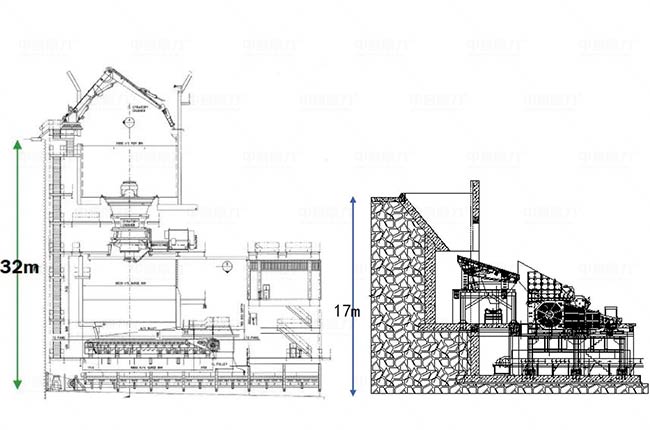 傳統(tǒng)旋回破和臥式旋回建設(shè)高度對比