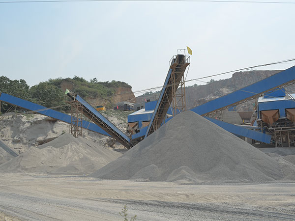 輸送傳送機(jī)械將中轉(zhuǎn)料堆巖石均勻運(yùn)輸?shù)綀A錐碎石機(jī)進(jìn)行中整型破碎破碎,破碎后由圓振動(dòng)篩進(jìn)行篩選分級(jí),較大顆粒巖石返送入圓錐式破石機(jī)又一次破碎;中等粒度巖石送入碎沙機(jī)整型破碎、整形; 粒級(jí)合格巖石由洗沙機(jī)清洗后做為終機(jī)械,
