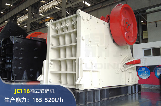 JC116顎式破碎機(jī)進(jìn)料口尺寸1150×760mm,進(jìn)料粒度≤640mm,出料大小≤70mm,電機(jī)功率110kw,時(shí)產(chǎn)量在520噸。
