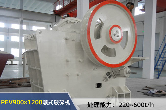 PEV900×1200顎式破碎機(jī)可處理粒度≤760mm的各類物料,出料調(diào)節(jié)范圍100-220mm之間,每小時(shí)產(chǎn)量在220-600噸范圍內(nèi)。