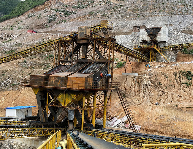 設備配置:ZG0938振動給料機+69顎式破碎機+1210雙腔硬巖破(1315反擊式破碎機)+圓振動篩+皮帶輸送機