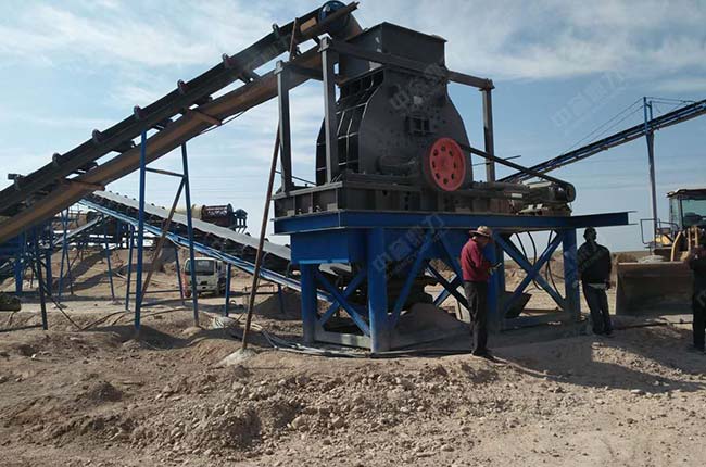 設備配置:ZG0930振動給料機+PCZ1410重錘式破碎機+2YKZ2060圓振動篩+皮帶輸送機