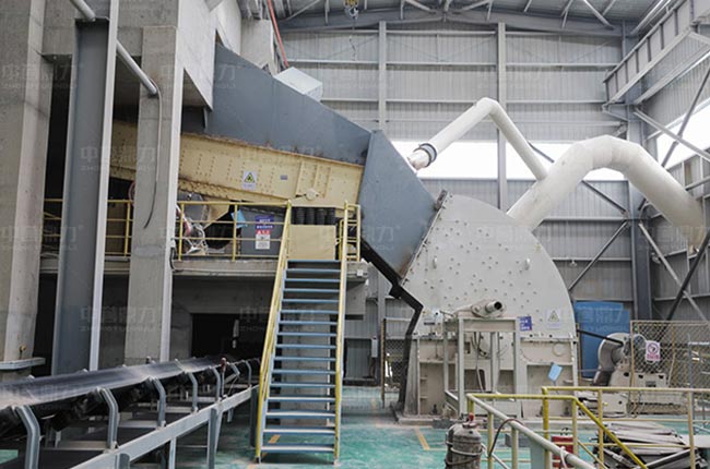 設(shè)備配置:PCZ1820重型錘式反擊破碎機(jī)、PC1622整形式破碎機(jī)、3YKZ3680振動篩、脈沖袋式除塵器及智能化管理系統(tǒng)等。