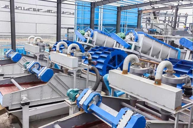 使用絞龍洗砂機(jī)好處在于清潔度高、洗砂用水量小、使用較為方便、軸水分離故障率少等優(yōu)點(diǎn),不過(guò)其細(xì)沙流失可能要高些,通常絞龍洗砂機(jī)后面要配置脫水篩或細(xì)沙回收一體機(jī)。