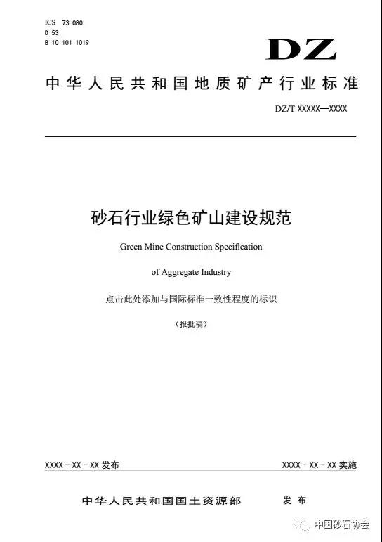 《砂石行業(yè)綠色礦山建設(shè)規(guī)范》等9項(xiàng)行業(yè)報批稿已正式公示