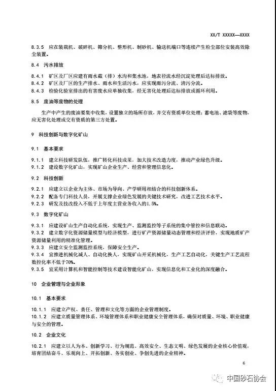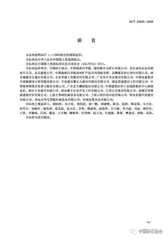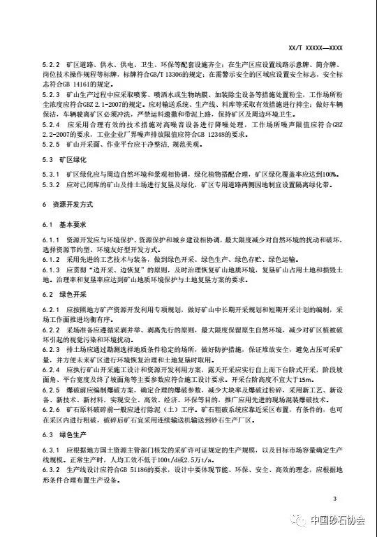 按照土資源行業(yè)制定程序要求和計(jì)劃安排,中砂石協(xié)會組織編制的《砂石行業(yè)綠色礦山建設(shè)規(guī)范》報批稿已通過土資源化技術(shù)委員會審查,現(xiàn)予公示。同時進(jìn)行公示的還有《非金屬行業(yè)綠色礦山建設(shè)規(guī)范》等,共9項(xiàng)行業(yè)報批稿。
