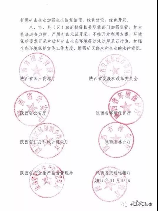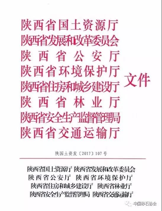 導(dǎo)讀:2017年11月24日,陜西省土資源廳、陜西省發(fā)展和改革委員會、陜西省公安廳、陜西省公安廳、陜西省環(huán)境保護(hù)廳、陜西省住房與城鄉(xiāng)建設(shè)廳、陜西省林業(yè)廳、陜西省安生產(chǎn)監(jiān)督管理局和陜西省交通運(yùn)輸廳八部門聯(lián)和發(fā)布《關(guān)于加快推進(jìn)采石礦山整治 保障石料市場供