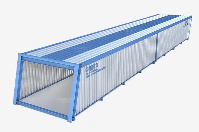 中譽(yù)鼎力DL組裝式廊道(砂石運(yùn)輸廊道),組成部分包括廊道底架、加強(qiáng)撐、波紋側(cè)板、底部花紋板、廊道側(cè)梁、采光板、廊道上架、支撐位等組成。廊道內(nèi)還設(shè)置有電纜、照明裝置、監(jiān)控?cái)z像頭固定位置。