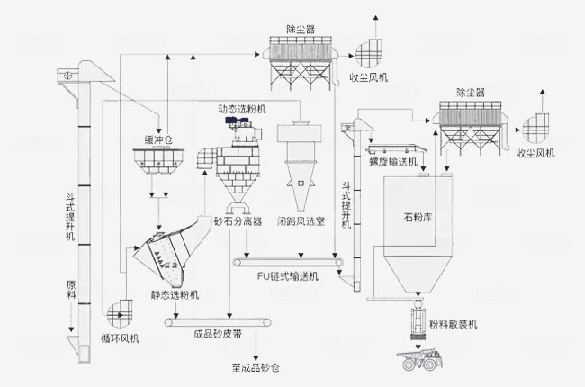 選粉機(jī):動(dòng)態(tài)選粉機(jī)調(diào)整物料級(jí)配,靜態(tài)選粉機(jī)打散物料使選粉更;