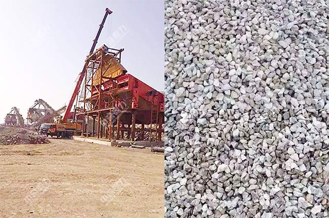 設(shè)備配置簡(jiǎn)單,建設(shè)周期短,投資金額低是該項(xiàng)目的主要特點(diǎn),整套生產(chǎn)線設(shè)備均安裝在室外,場(chǎng)地比較大,地勢(shì)平緩,土建難度較低,振動(dòng)篩、石料輸送機(jī)等設(shè)備采用鋼結(jié)構(gòu)支撐,因?yàn)闆]有除塵措施,所以整條生產(chǎn)線在作業(yè)時(shí)灰塵比較大,如果后期需要環(huán)保生產(chǎn),還可以加裝收塵設(shè)備。