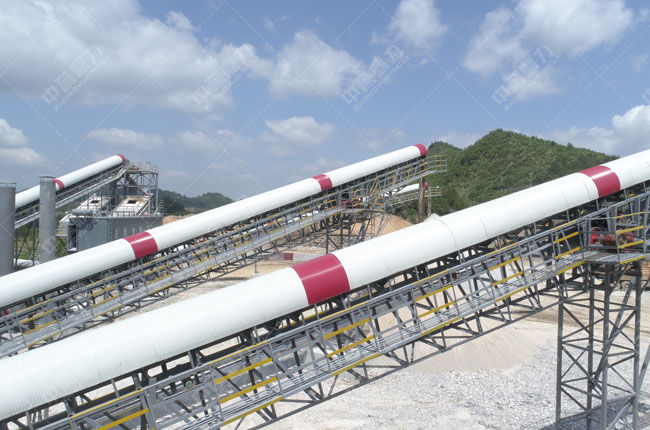 大塊石灰石經(jīng)料倉(cāng)通過(guò)給料機(jī)除雜質(zhì),泥土后,由PCZ1815重錘破進(jìn)行粗破,破碎后的石料經(jīng)3070振動(dòng)篩進(jìn)行篩選,未達(dá)到要求的石料返回1622整形破碎機(jī)進(jìn)行破碎,符合制砂要求的由1218雙轉(zhuǎn)子制砂機(jī)進(jìn)行細(xì)碎制砂。