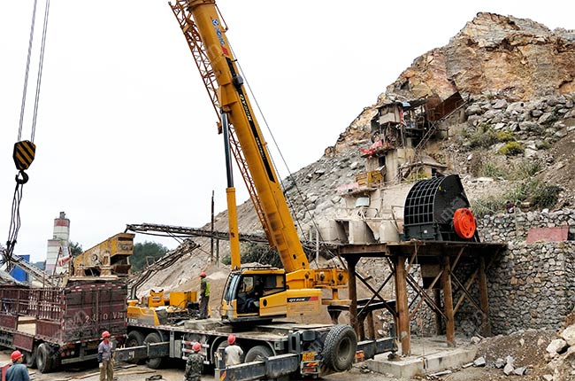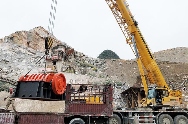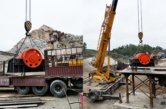 上面是重型錘式破碎機從廠家到達安裝現(xiàn)場的圖片,從圖中可以看到,安裝地基已經(jīng)建好,設(shè)備的主體部件正在吊裝。
