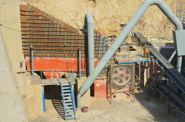 ZG1238振動給料機、PCZ1512重型錘式破碎機、2YK2060振動篩*2、DMCA脈沖除塵器*5臺等。在這條石料生產(chǎn)線中,物料先經(jīng)由重型錘式破碎機進行破碎,被破碎后的物料經(jīng)振動篩篩分分級,符合客戶粒度需求的成品物料被傳送至成品料堆,不符合的物料被重新送至破碎機機腔內(nèi)進行再次破碎。在每一個環(huán)節(jié)都配置有相應的除塵設備。這是一條封閉型的環(huán)保石料生產(chǎn)線。也是我們家砂石生產(chǎn)行業(yè)要發(fā)展的方向。