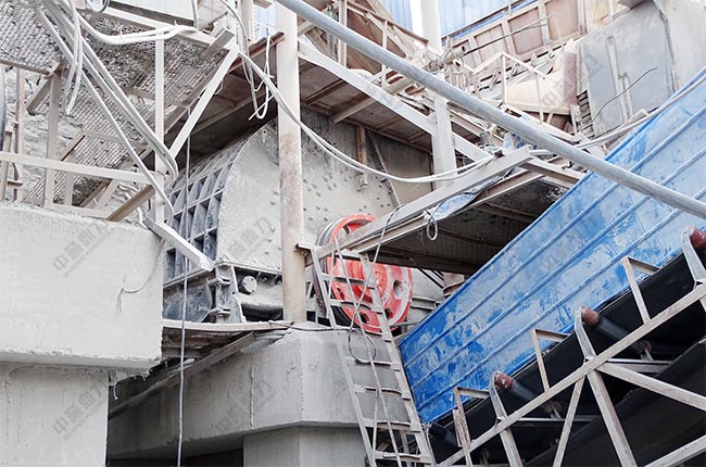 頭破配置了中譽鼎力的1615重錘式破碎機,可以進650mm以下的大塊石灰石原料,出料粒度在250mm以下。