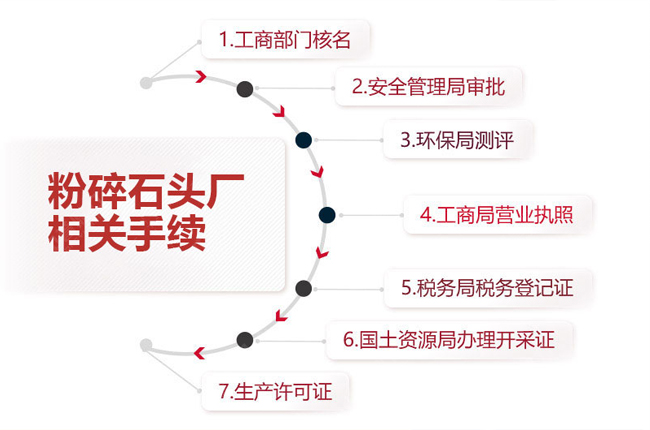 【碎石場需要什么手續(xù)?碎石生產(chǎn)線設(shè)備有哪些?】想要辦一個碎石場,齊的合法手續(xù)是主要,假如沒有辦理完整的合法手續(xù),則視為非法生產(chǎn),后期將面對停廠或許罰款的狀態(tài),因此提早要辦理好齊的手續(xù),那么開一個碎石場都需要哪些手續(xù)呢?下面一張圖讓您掌握: