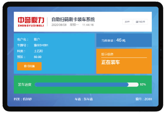 3、插卡進(jìn)行沙石料定量裝車;